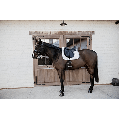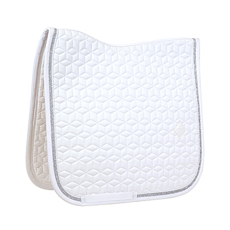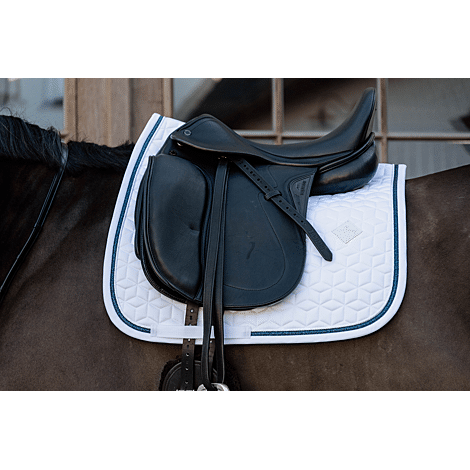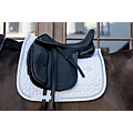 Unsere Schabracke mit Glitzereinfassung ist für Springen oder Dressur geeignet und polstert hervorragend zwischen Pferderücken und Sattel, so dass sie vor Verspannung schützt. Diese Schabracke hat eine einzigartige Sternsteppung und eine atemberaubende Einfassung mit einer Glitzerkordel. Es gibt keine störenden Schlaufen zur Befestigung am Sattel, sondern nur einen Nylonriemen für den Gurt. Sie ist maschinenwaschbar bei 30 °, kein Trockner.