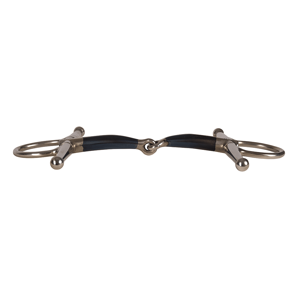 Das einfach gebrochene Mundstück ermöglicht eine direkte, eindeutige Einwirkung, während die Knebel seitliche Unterstützung bieten und das Gebiss ruhig und stabil im Maul halten. Diese Stabilität fördert leichtes Kauen, präzise Zügelhilfen und eine selbstbewusste Anlehnung.