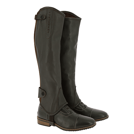 Volnerf rundleren halve chaps, fijn generfd. Ze zijn gemaakt van soepel leder en sluiten perfect aan op uw kuiten voor optimaal comfort. "YKK-achterrits, beveiligd met drukknopen op de kleppen bovenaan en onderaan. Elastische voetriempjes zijn met leder verstevigd.