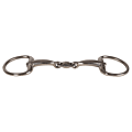 Dankzij de dubbel gebroken constructie wordt de druk gelijkmatig verdeeld over tong en lagen, zonder het notenkraak-effect. De vaste busringen houden het bit stil in de mond, beperken overmatige zijwaartse beweging en helpen knellen bij de mondhoeken te voorkomen. Deze stabiliteit ondersteunt paarden die een rustiger, betrouwbaarder contact waarderen.